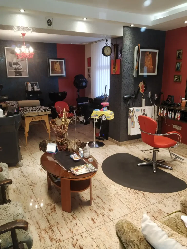 Maga a fodrászat berendezése nagyon otthonos, a piros és fekete szín, a kedves emlékek, képek, fotelek, díszpárnák adják a harmonikus érzést és azt, hogy olyan, mintha csak egy régi ismerőshöz ugranánk be. Ha nem kedveled a hangos, zsúfolt szalonokat vagy utálod amikor a fejed fölött megy a pletyka, akkor Gabinál jól fogod magad érezni. Sokkal nyugisabb, kellemesebb nála a hangulat.