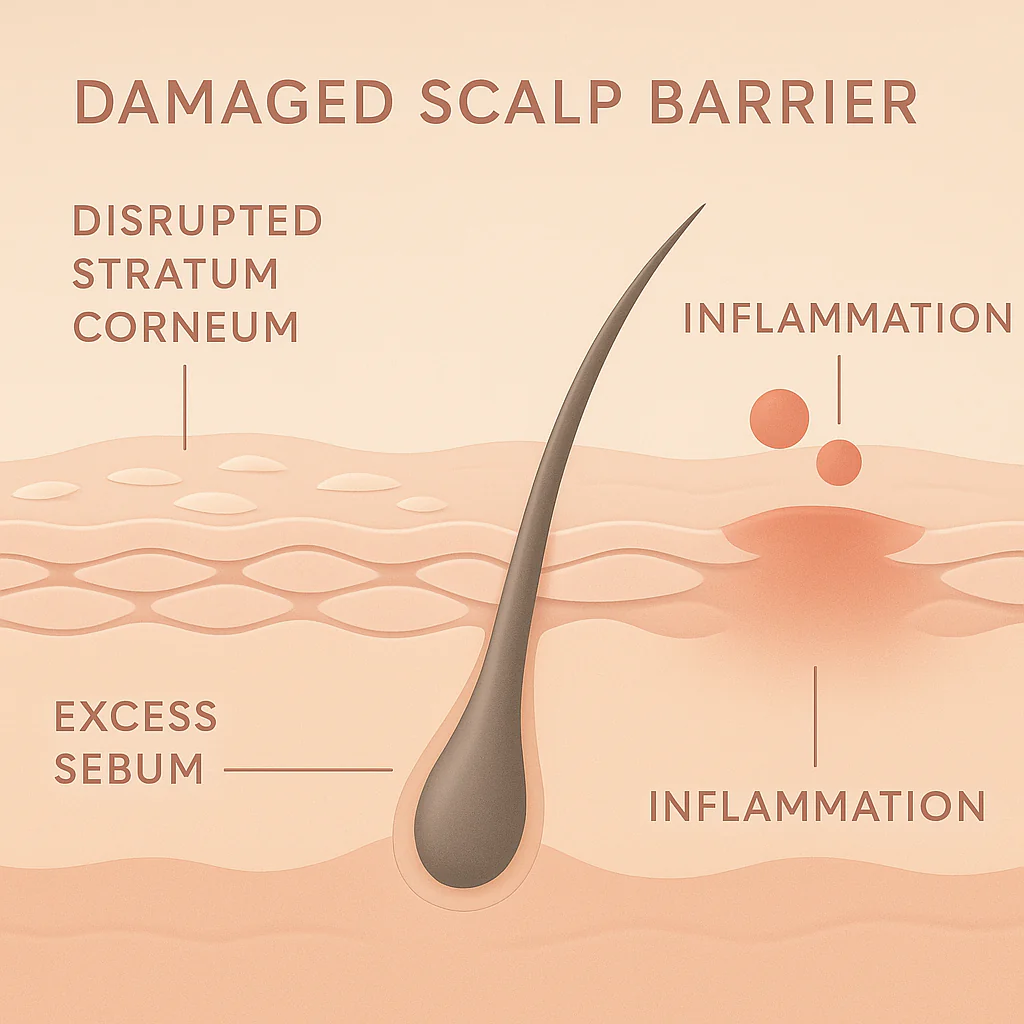 - barrier-diszfunkció: a fejbőr védőrétegének károsodása