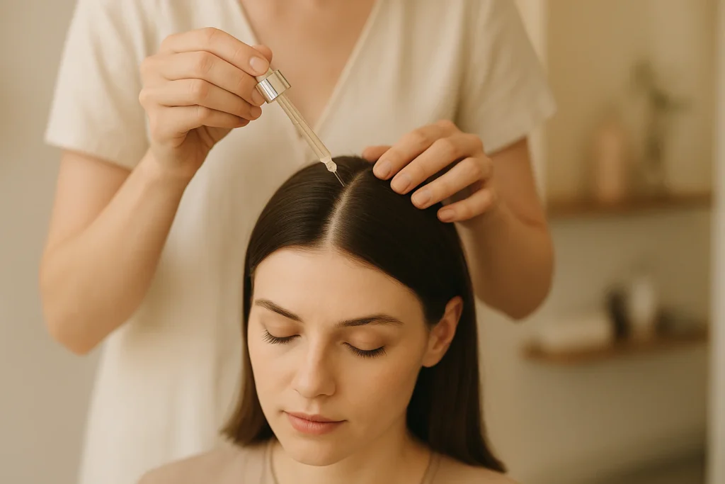 Ilyenkor a fodrász nem kezel, de irányítja a vendéget bőrgyógyászhoz, és segít fenntartó rutin kialakításában (gyulladáscsökkentő botanical extracts, niacinamide, aloe vera, EGCG).